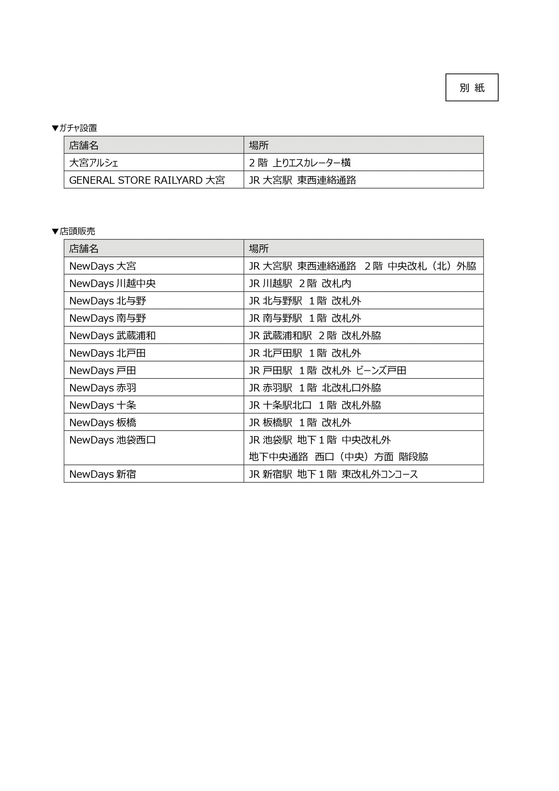 ■ガチャ設置:アルシェ大宮、GENERAL STORE RAILYARD大宮(10月8日(水) リニューアルオープン)
