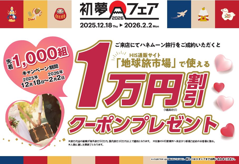 埼玉県のエイチ・アイ・エス9店舗では、絶賛開催中「初夢フェア2026」の期間に合わせて、