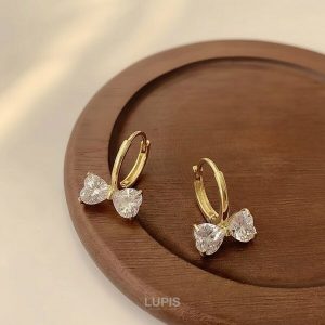 ハート型のジュエルがきらめくリボンモチーフピアス🎀💖